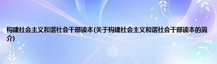 本文关于构建社会主义和谐社会干部读本的简介就讲解完毕,希望对大家有所帮助。