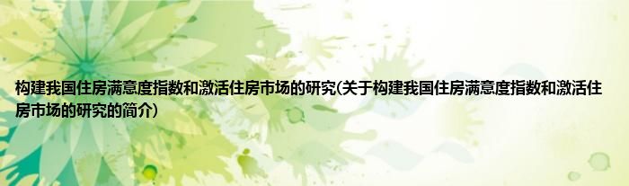 大家好,构建我国住房满意度指数和激活住房市场的研究,关于构建我国住房满意度指数和激活住房市场的研究的简介很多人还不知道,现在让我们一起来看看吧!