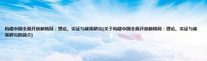 本文关于构建中国全面开放新格局:理论、实证与政策研究的简介就讲解完毕,希望对大家有所帮助。