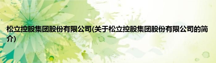本文关于松立控股集团股份有限公司的简介就讲解完毕,希望对大家有所帮助。