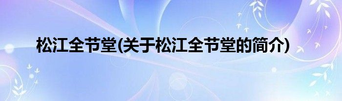 大家好,松江全节堂,关于松江全节堂的简介很多人还不知道,现在让我们一起来看看吧!