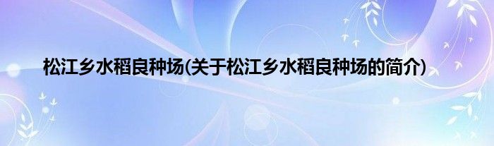 本文关于松江乡水稻良种场的简介就讲解完毕,希望对大家有所帮助。