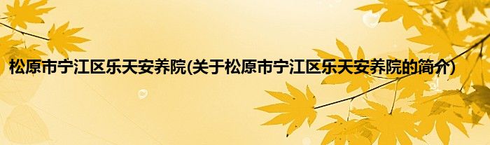 本文关于松原市宁江区乐天安养院的简介就讲解完毕,希望对大家有所帮助。