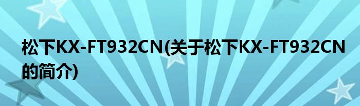 本文关于松下KX-FT932CN的简介就讲解完毕,希望对大家有所帮助。