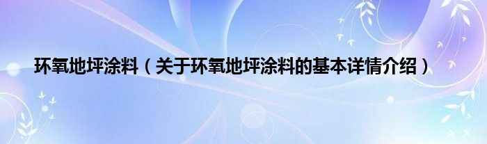 本文关于环氧地坪涂料的基本详情介绍就讲解完毕,希望对大家有所帮助。