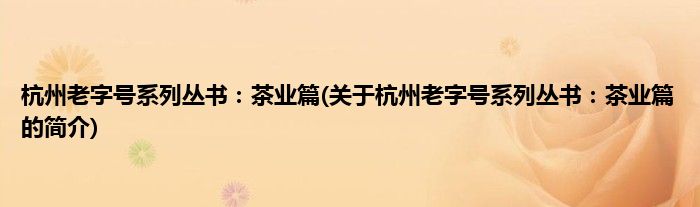1、 《杭州老字号系列丛书:茶业篇》是2008年5月浙江大学出版社出版的图书。