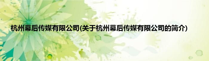 本文关于杭州幕后传媒有限公司的简介就讲解完毕,希望对大家有所帮助。