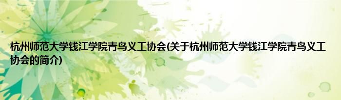 本文关于杭州师范大学钱江学院青鸟义工协会的简介就讲解完毕,希望对大家有所帮助。