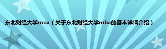 本文关于东北财经大学mba的基本详情介绍就讲解完毕,希望对大家有所帮助。