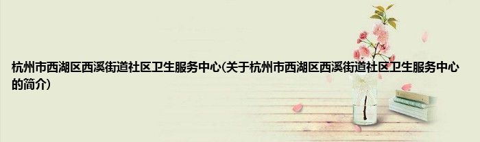 大家好,杭州市西湖区西溪街道社区卫生服务中心,关于杭州市西湖区西溪街道社区卫生服务中心的简介很多人还不知道,现在让我们一起来看看吧!