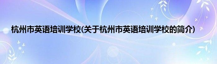 本文关于杭州市英语培训学校的简介就讲解完毕,希望对大家有所帮助。