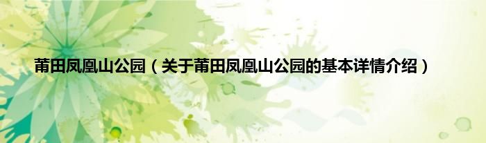 本文关于莆田凤凰山公园的基本详情介绍就讲解完毕,希望对大家有所帮助。