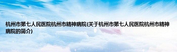 本文关于杭州市第七人民医院杭州市精神病院的简介就讲解完毕,希望对大家有所帮助。