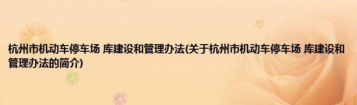 大家好,杭州市机动车停车场 库建设和管理办法,关于杭州市机动车停车场 库建设和管理办法的简介很多人还不知道,现在让我们一起来看看吧!