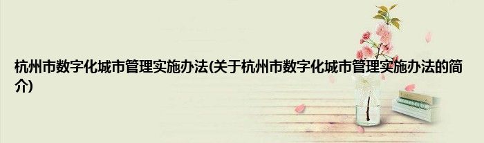 杭州市数字化城市管理实施办法(关于杭州市数字化城市管理实施办法的简介)
