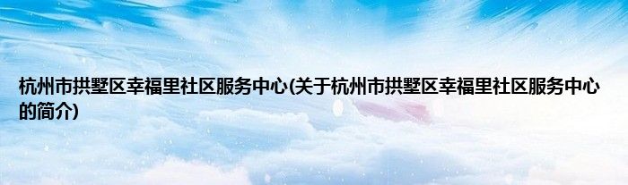 本文关于杭州市拱墅区幸福里社区服务中心的简介就讲解完毕,希望对大家有所帮助。