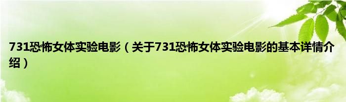 本文关于731恐怖女体实验电影的基本详情介绍就讲解完毕,希望对大家有所帮助。