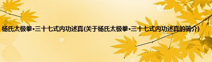 本文关于杨氏太极拳·三十七式内功述真的简介就讲解完毕,希望对大家有所帮助。