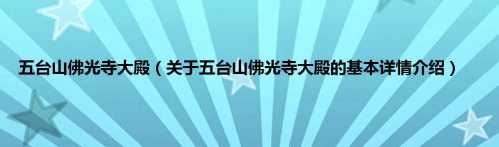 本文关于五台山佛光寺大殿的基本详情介绍就讲解完毕,希望对大家有所帮助。