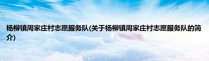 本文关于杨柳镇周家庄村志愿服务队的简介就讲解完毕,希望对大家有所帮助。