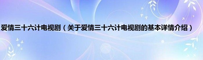 本文关于爱情三十六计电视剧的基本详情介绍就讲解完毕,希望对大家有所帮助。