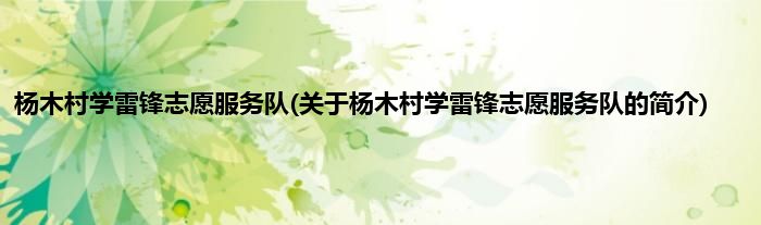 大家好,杨木村学雷锋志愿服务队,关于杨木村学雷锋志愿服务队的简介很多人还不知道,现在让我们一起来看看吧!