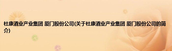 本文关于杜康酒业产业集团 厦门股份公司的简介就讲解完毕,希望对大家有所帮助。
