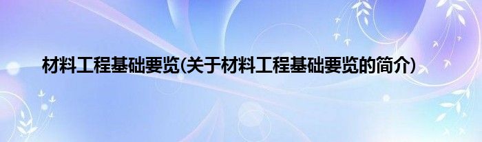 本文关于材料工程基础要览的简介就讲解完毕,希望对大家有所帮助。