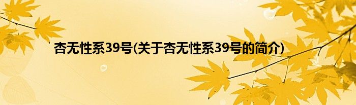 大家好,杏无性系39号,关于杏无性系39号的简介很多人还不知道,现在让我们一起来看看吧!