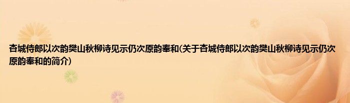 本文关于杏城侍郎以次韵樊山秋柳诗见示仍次原韵奉和的简介就讲解完毕,希望对大家有所帮助。