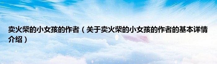 本文关于卖火柴的小女孩的作者的基本详情介绍就讲解完毕,希望对大家有所帮助。