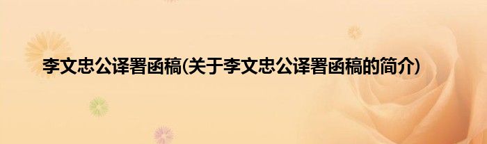 本文关于李文忠公译署函稿的简介就讲解完毕,希望对大家有所帮助。