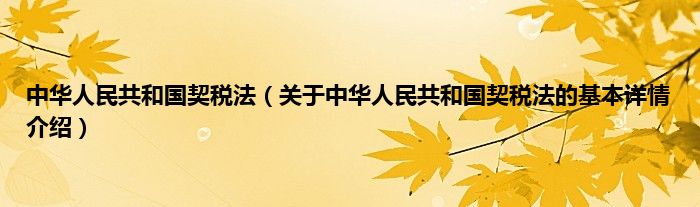 本文关于中华人民共和国契税法的基本详情介绍就讲解完毕,希望对大家有所帮助。