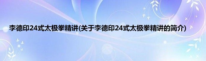 本文关于李德印24式太极拳精讲的简介就讲解完毕,希望对大家有所帮助。