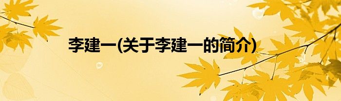 大家好,李建一,关于李建一的简介很多人还不知道,现在让我们一起来看看吧!
