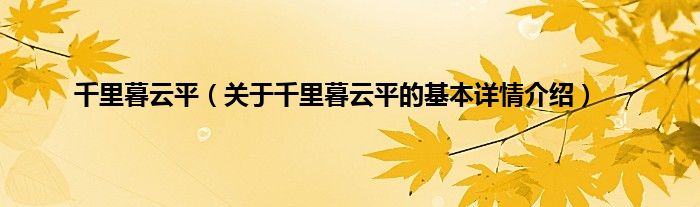 本文关于千里暮云平的基本详情介绍就讲解完毕,希望对大家有所帮助。