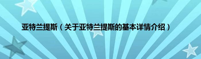 本文关于亚特兰提斯的基本详情介绍就讲解完毕,希望对大家有所帮助。
