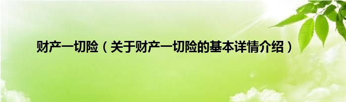 本文关于财产一切险的基本详情介绍就讲解完毕,希望对大家有所帮助。