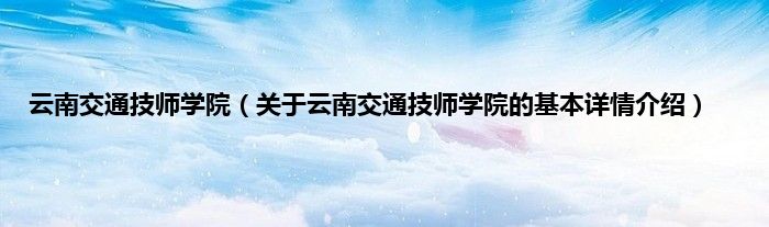 本文关于云南交通技师学院的基本详情介绍就讲解完毕,希望对大家有所帮助。