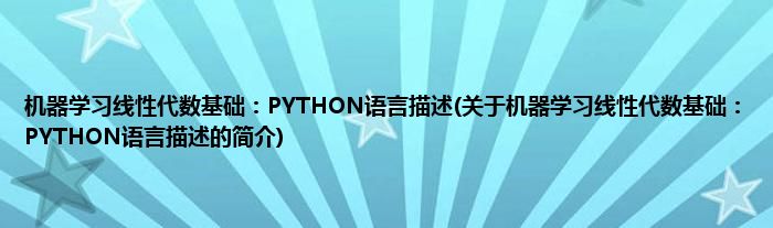 本文关于机器学习线性代数基础:PYTHON语言描述的简介就讲解完毕,希望对大家有所帮助。