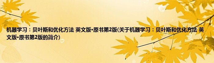 本文关于机器学习:贝叶斯和优化方法 英文版·原书第2版的简介就讲解完毕,希望对大家有所帮助。