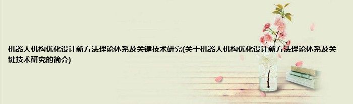 本文关于机器人机构优化设计新方法理论体系及关键技术研究的简介就讲解完毕,希望对大家有所帮助。