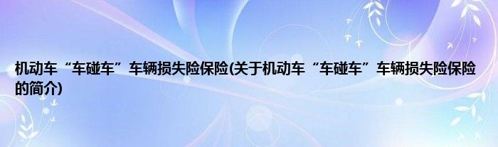 机动车“车碰车”车辆损失险保险(关于机动车“车碰车”车辆损失险保险的简介)