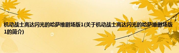 本文关于机动战士高达闪光的哈萨维剧场版1的简介就讲解完毕,希望对大家有所帮助。