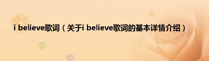 本文关于i believe歌词的基本详情介绍就讲解完毕,希望对大家有所帮助。