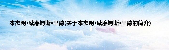 大家好,本杰明·威廉姆斯·里德,关于本杰明·威廉姆斯·里德的简介很多人还不知道,现在让我们一起来看看吧!