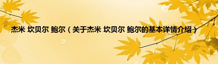 本文关于杰米 坎贝尔 鲍尔的基本详情介绍就讲解完毕,希望对大家有所帮助。