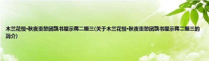 木兰花慢·秋夜重憩团飘书屋示蒋二振三(关于木兰花慢·秋夜重憩团飘书屋示蒋二振三的简介)