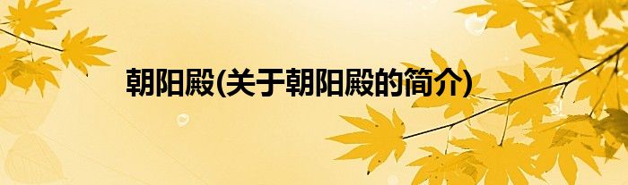 本文关于朝阳殿的简介就讲解完毕,希望对大家有所帮助。
