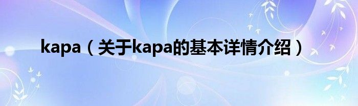 本文关于kapa的基本详情介绍就讲解完毕,希望对大家有所帮助。